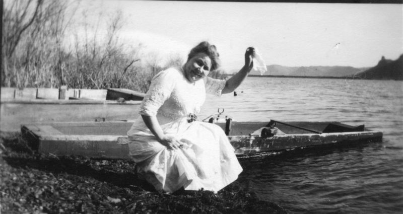 File:Helene, sitting on canoe, undated.jpg