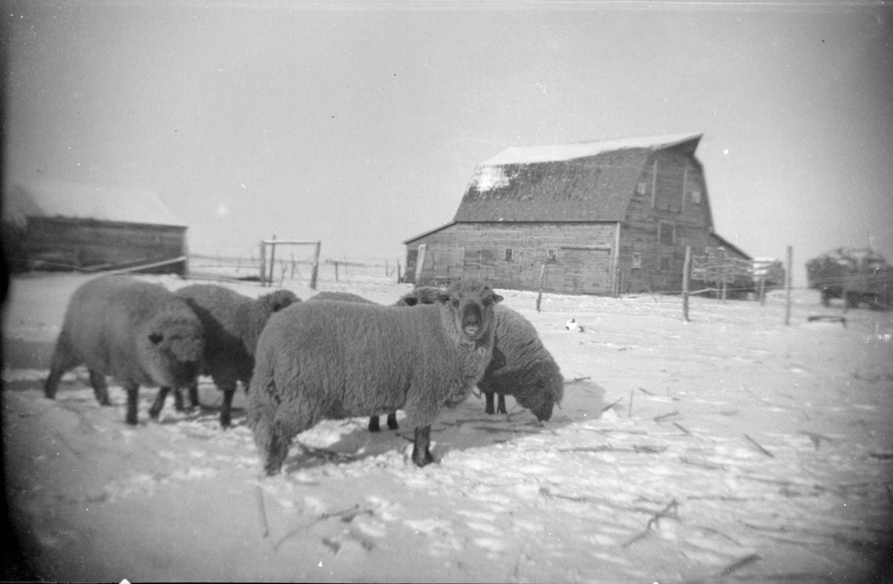 Categories Uncategorized Sheep in Snowy Barnyard, 1930s. Post author By Derek Dahlsad Post date February 27, 2009 Click for full image Tags 1930s, farm life, sheep, snow, winter